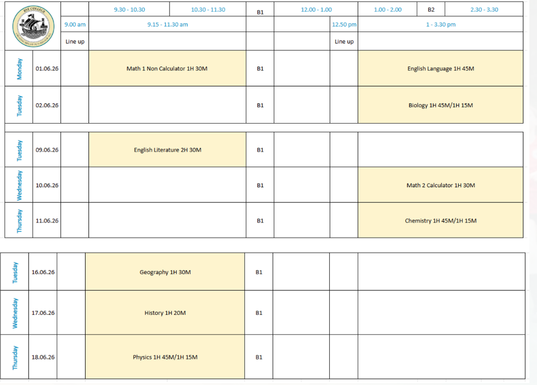 Y11 6G26 Summer Exams 2026