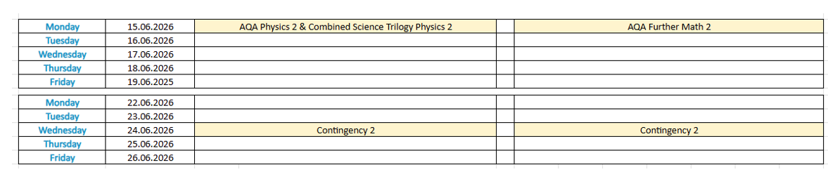 Y11 6G26 Summer Exams 2026
