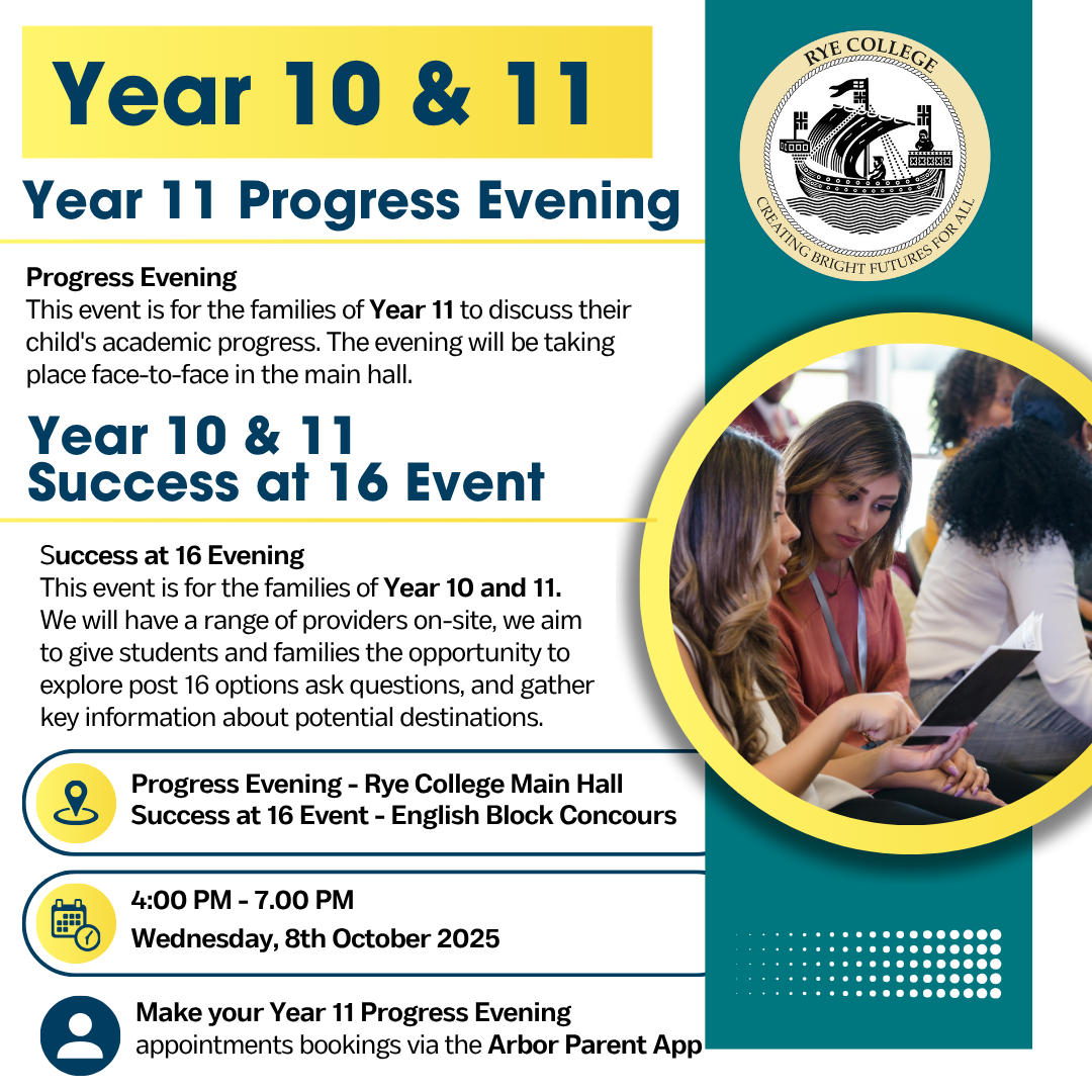 This is your go-to space for staying organised, focused, and supported throughout your final year at Rye College. Here you'll find key dates, revision tips, study tools, and wellbeing resources to help you manage your time, boost your confidence, and prepare for success. Whether you're planning your revision or just looking for some support, everything you need is right here.