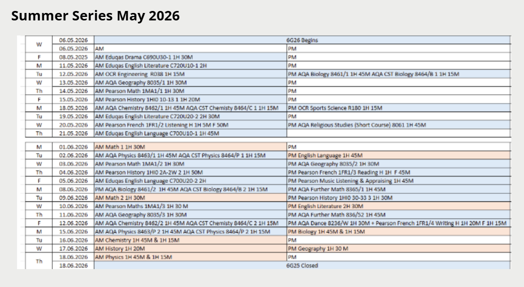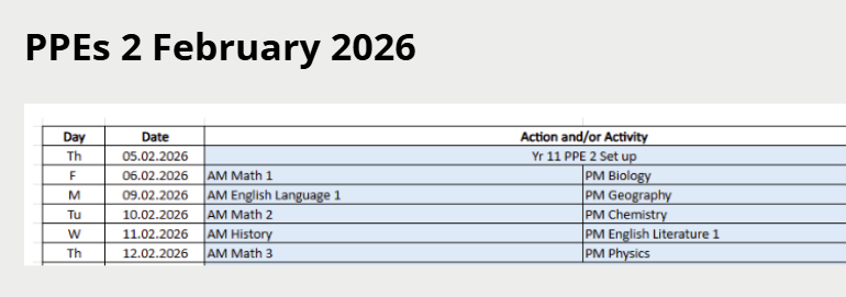 Pre-Public Examinations Series 2 | Friday, 6th February - Thursday, 12th February 2026 |