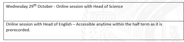 Year 11 October Half Term Revision sessions